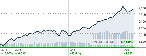The gains here are probably all going to speculators trying to play the market. They want to buy the lows and sell the highs and come out ahead. Some will win and some will lose. In the short run, the gains and losses approximately cancel out. Your retirement account doesn't work this way. Here's what the 5 year S&P 500 looks like: